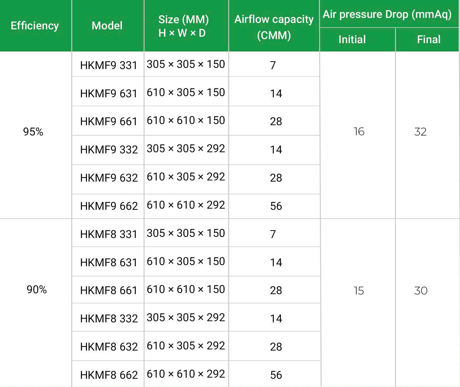Khung Lọc: nhôm, sắt mạ kẽm,MDF và SUS 304 với khả năng chịu nhiệt lên đến 250oC